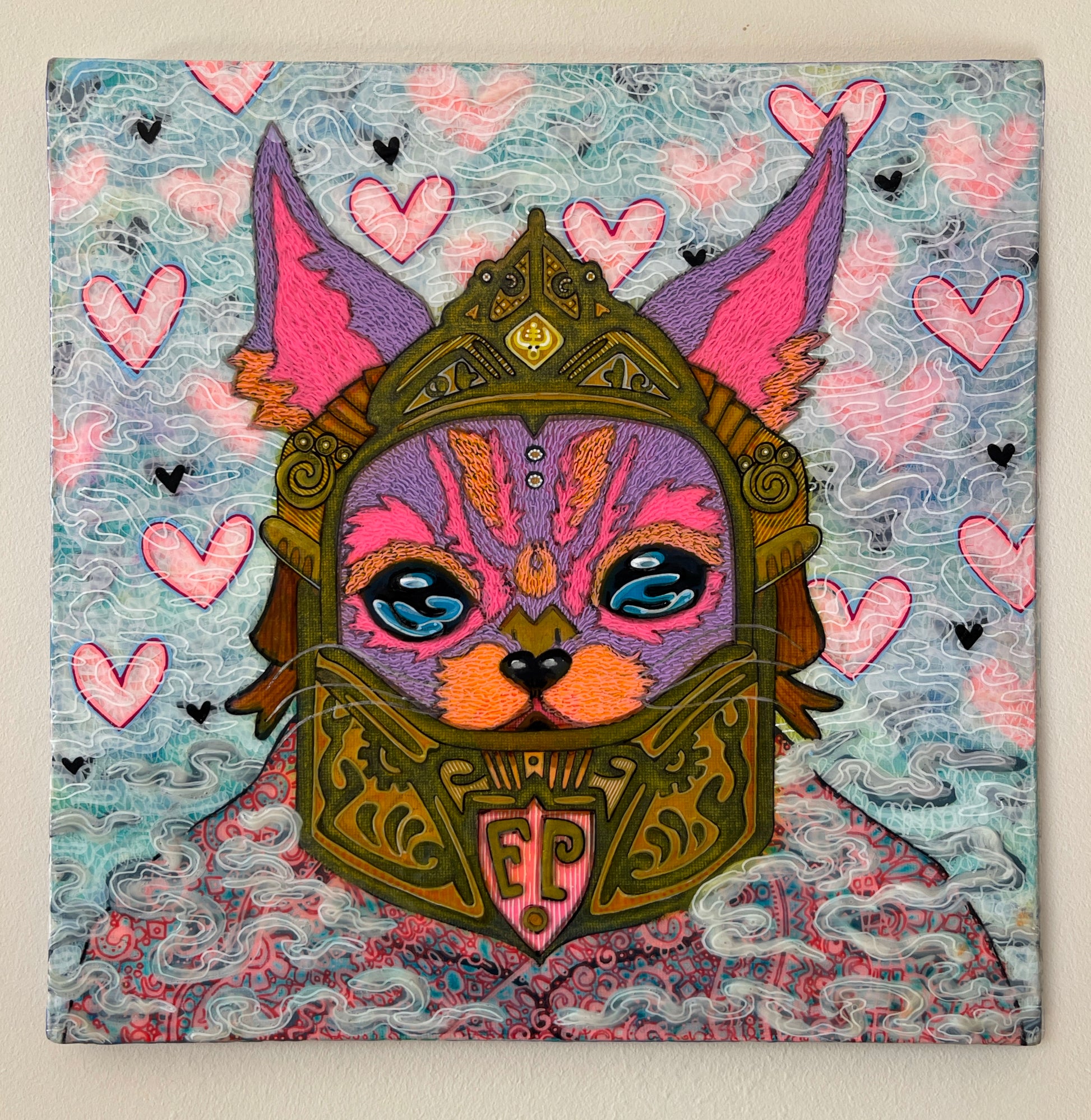 This is the original canvases of Fontaine Pirague, an original character designed by JoJo Fowl Plays. Ready to hang, this canvas comes as is or with the option of a floating, black frame, giving it an extra lift of class and durability (please note; if you want the canvas framed you need to get in touch before purchase and shipping time will be extended to allow for framing time). Limited edition prints are also available in the archival prints collection if you love this piece but aren’t able to commit to the original.