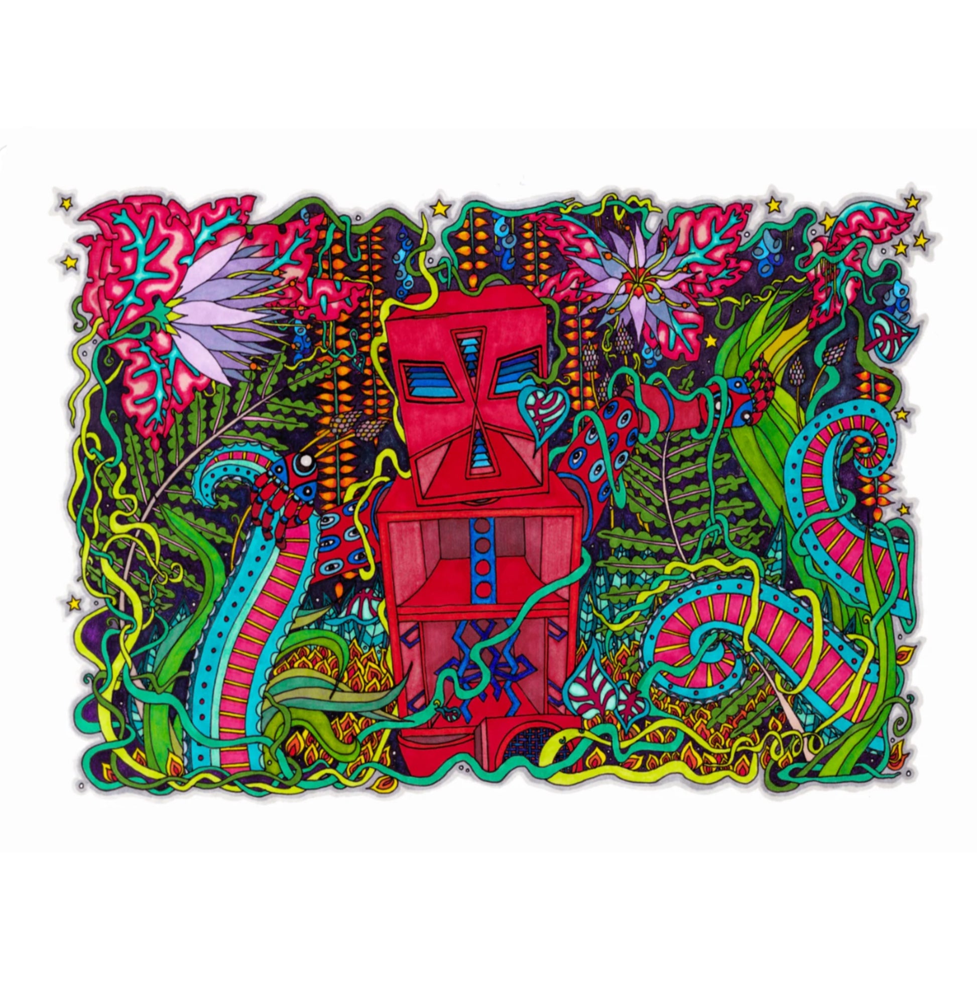 Get ready to groove with this vibrant, energetic Jungle Dance Party illustration! This funky robot, inspired by the Void Incubus Series sound system speakers, is rushing through the jungle to get to its favorite dance floor, ready to boogie to the beats of its favorite DJ. Perfect for adding a pop of color and fun to children's bedrooms, playrooms, or any space that could use a burst of energy and movement. Whether you're a fan of robots, music, or just love a good party vibe, this print is sure to bring joy to any room.